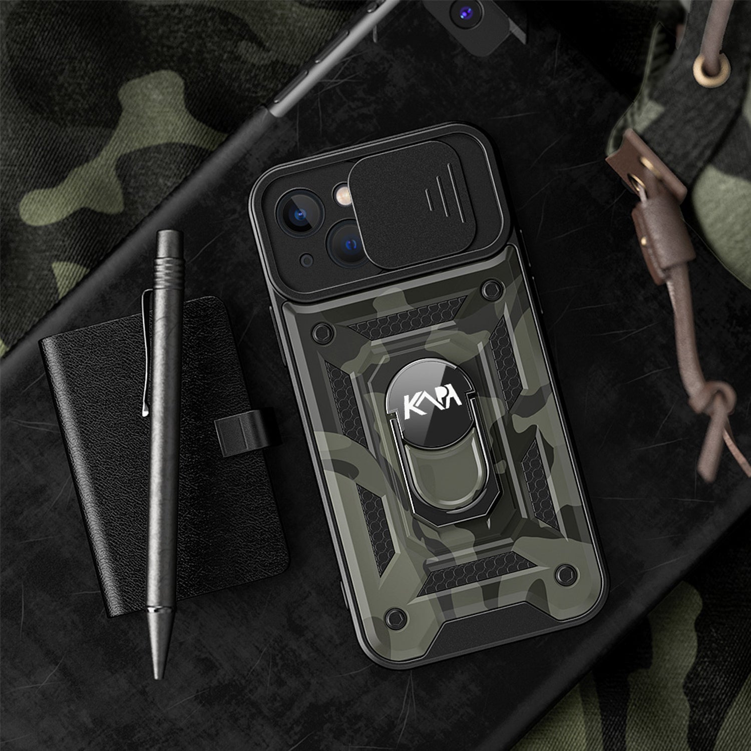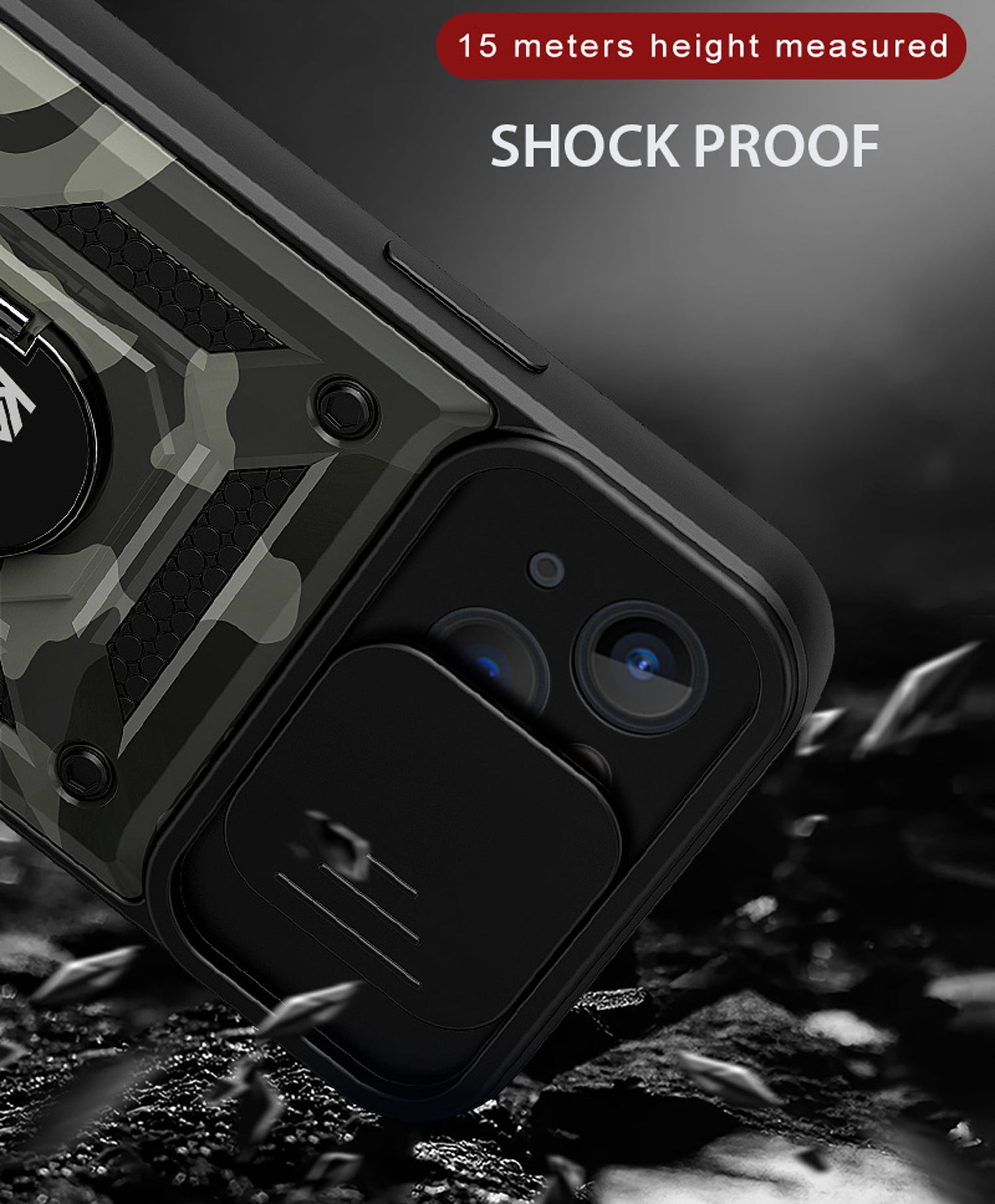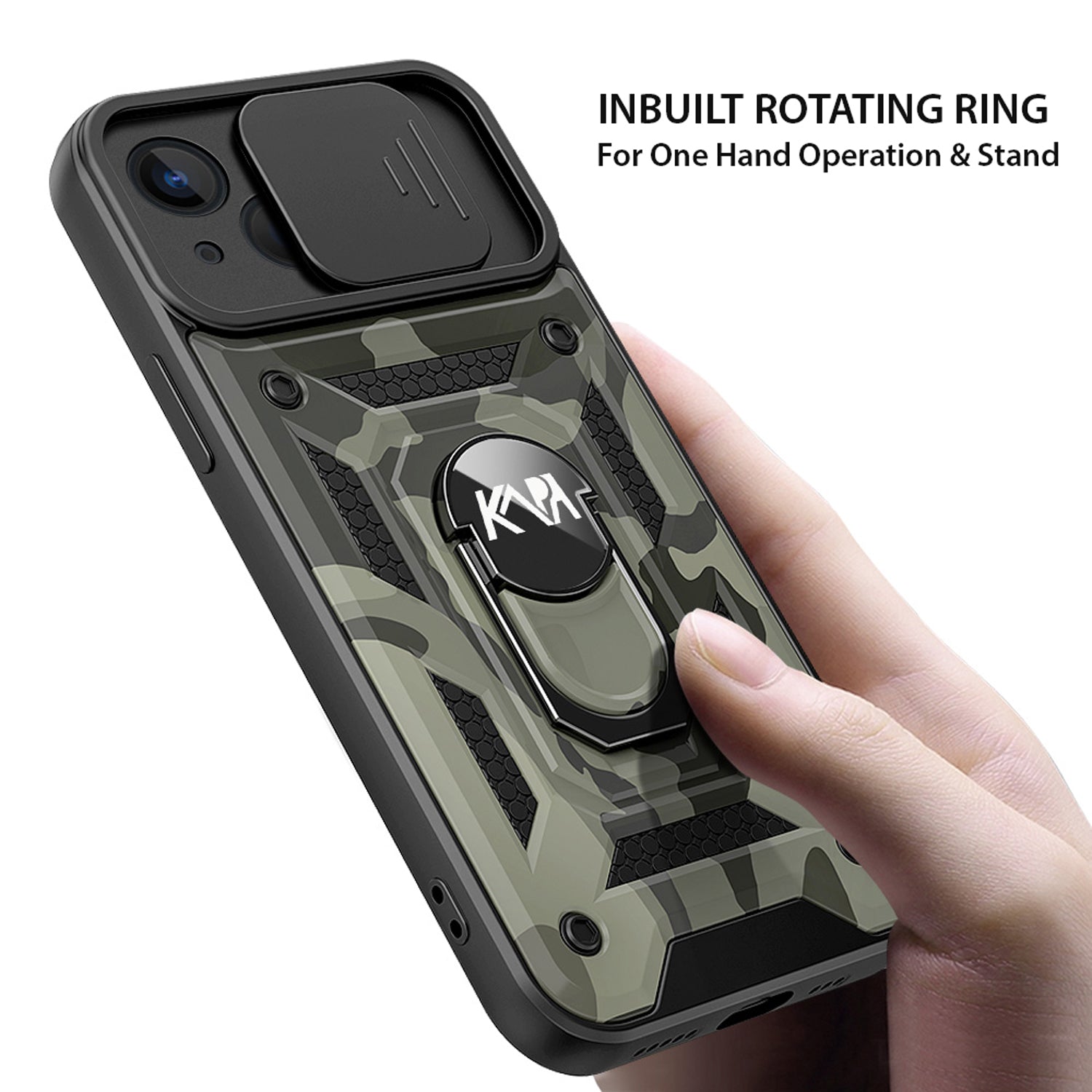 Tank Back Cover for Apple iPhone 13 (6.1) , Inbuilt Ring & Slider [Military Grade Protection] Shockproof Lens Protection Case (Black)