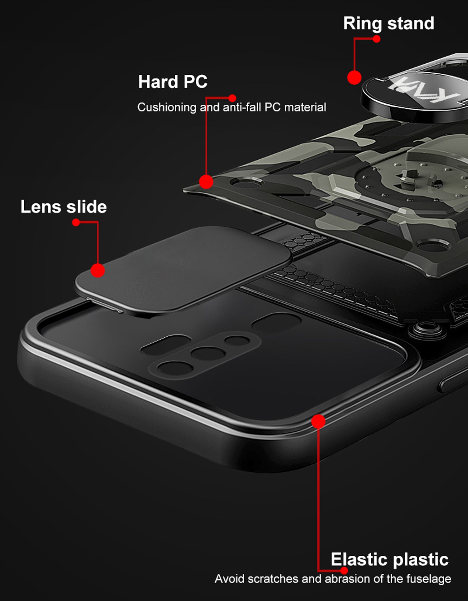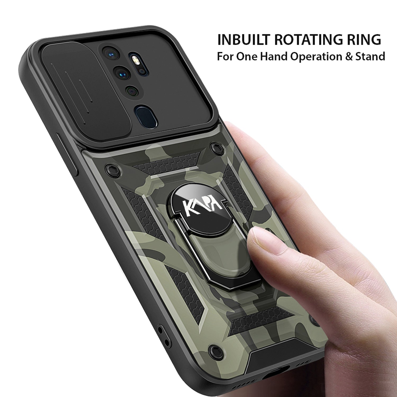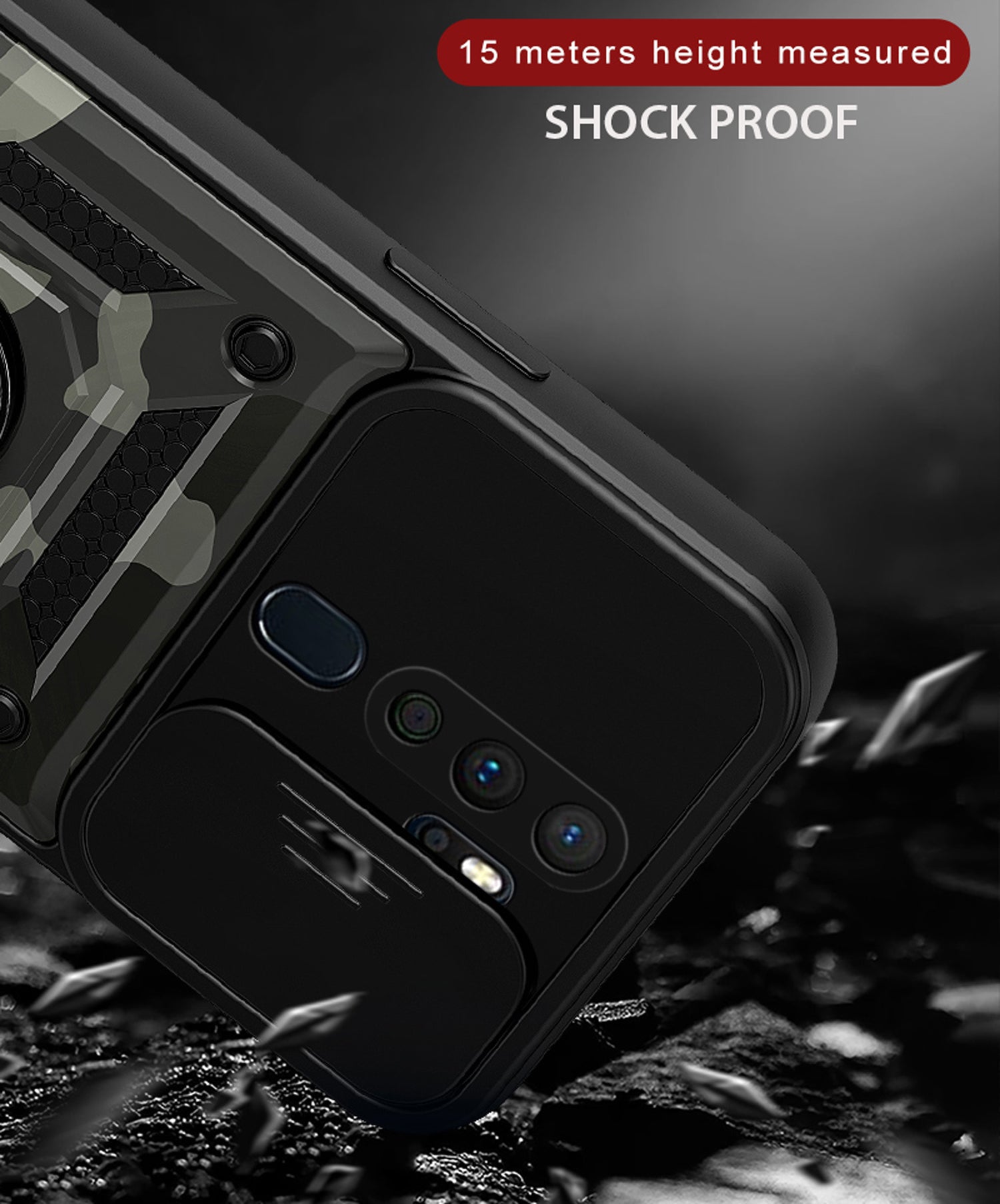 Tank Back Cover for Oppo A9 (2020) , Inbuilt Ring & Slider [Military Grade Protection] Shockproof Lens Protection Case (Black)