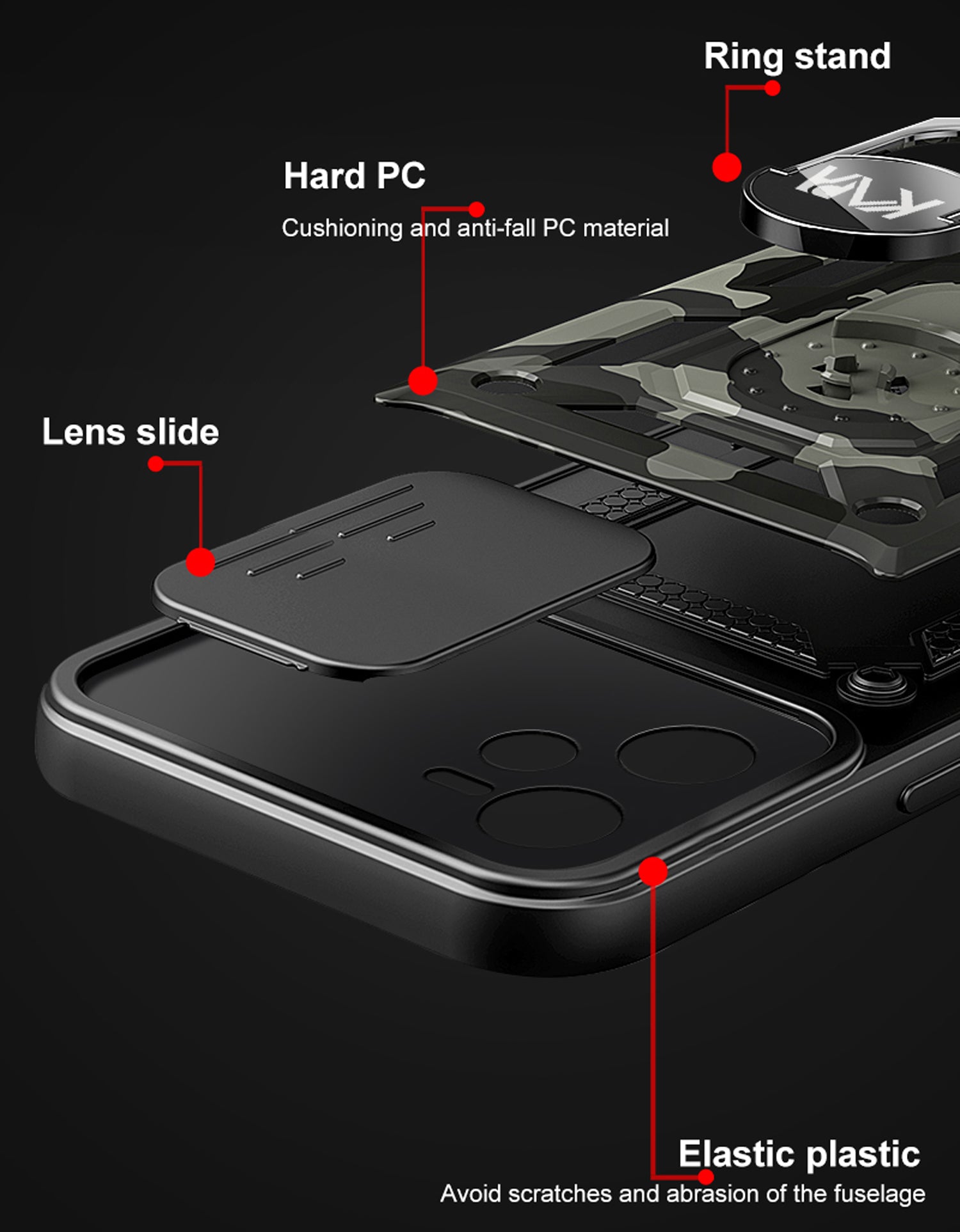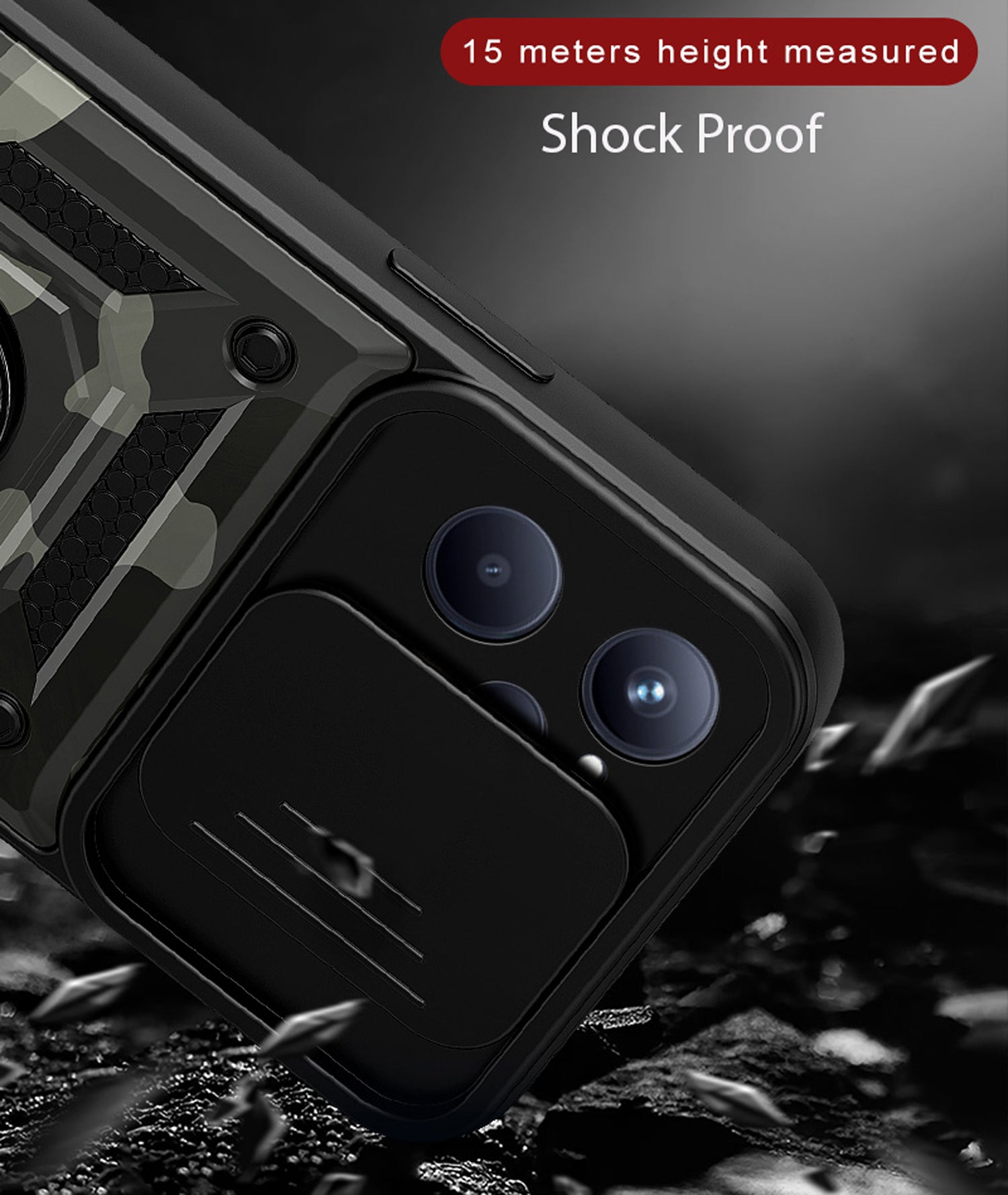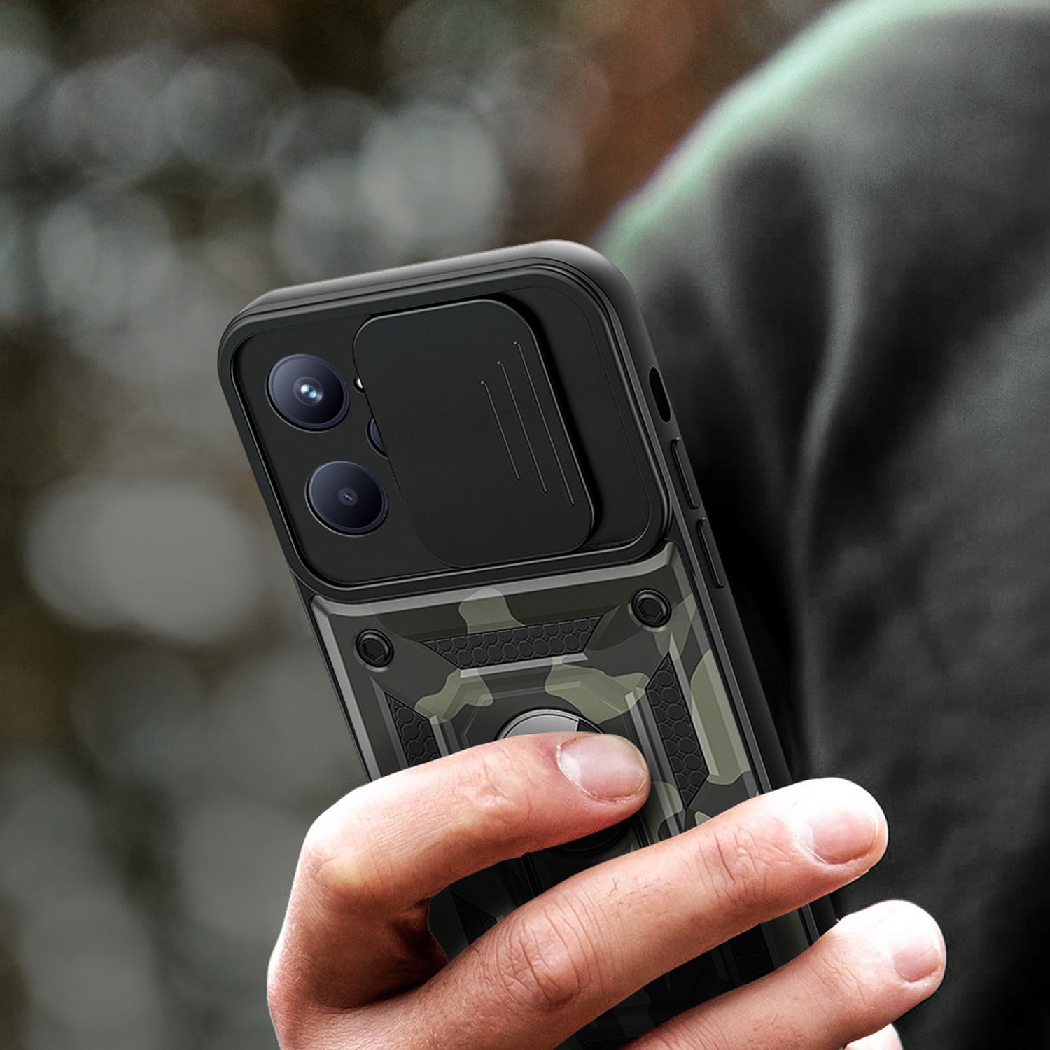 Tank Back Cover for Realme C35 , Inbuilt Ring + Slider Shockproof Lens Protection Case (Black)