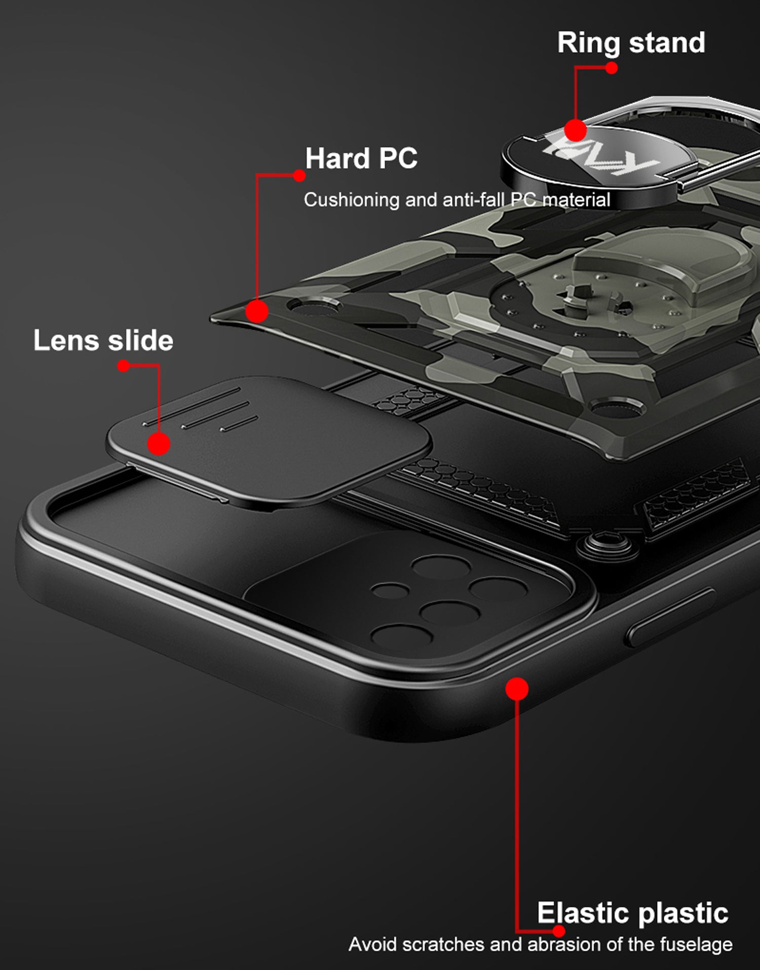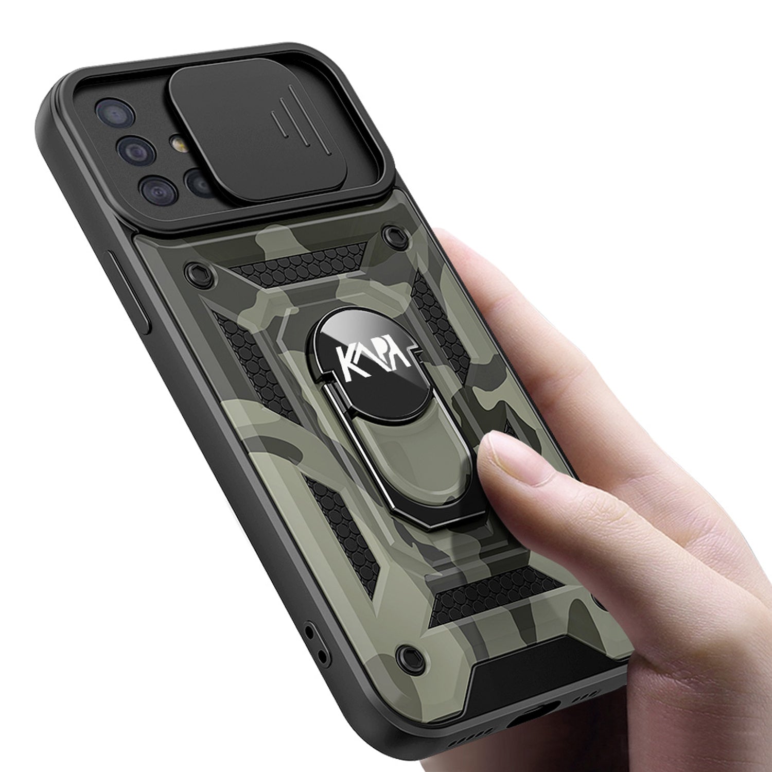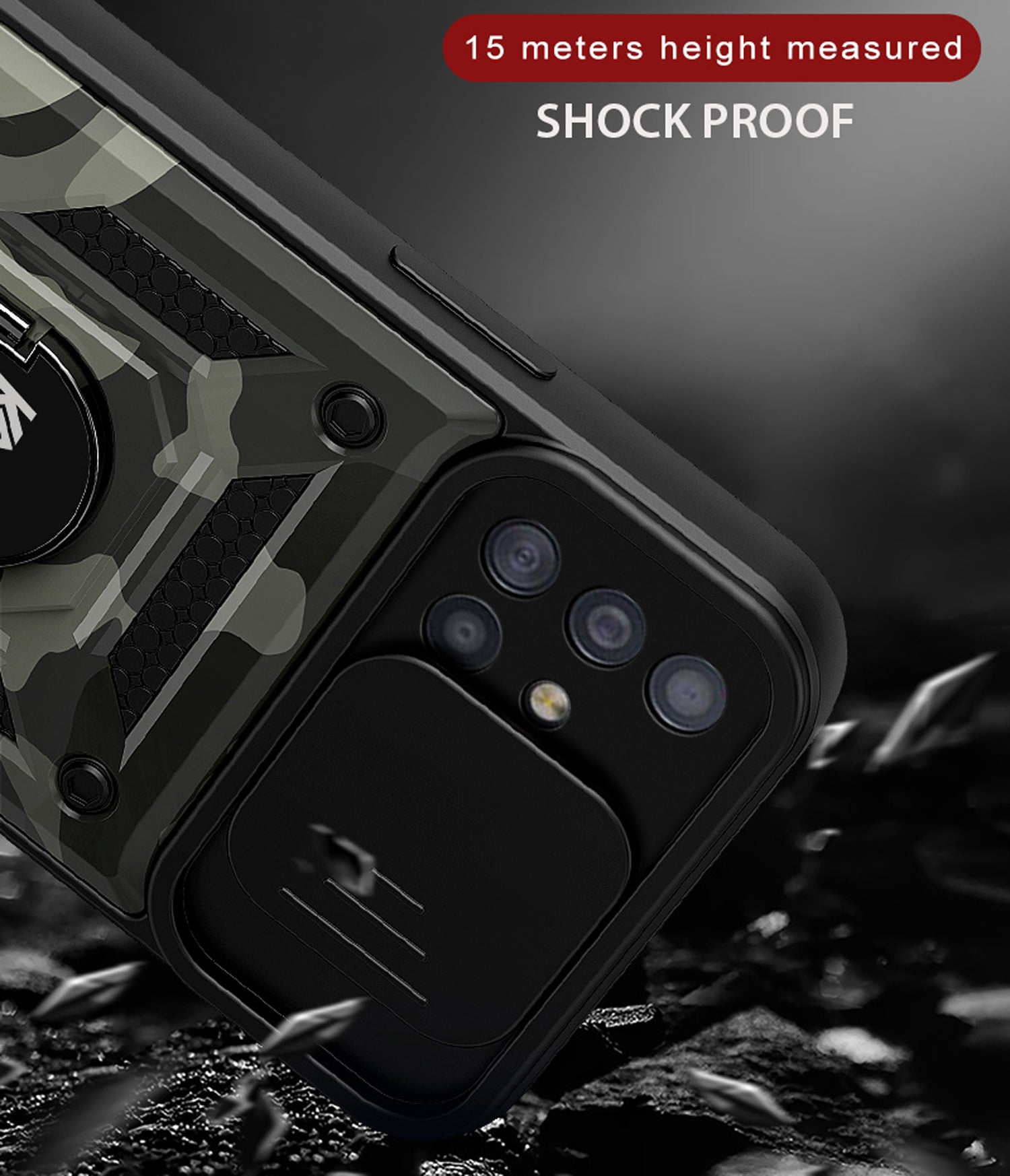 Tank Back Cover for Samsung Galaxy A71 , Inbuilt Ring & Slider [Military Grade Protection] Shockproof Lens Protection Case (Black)