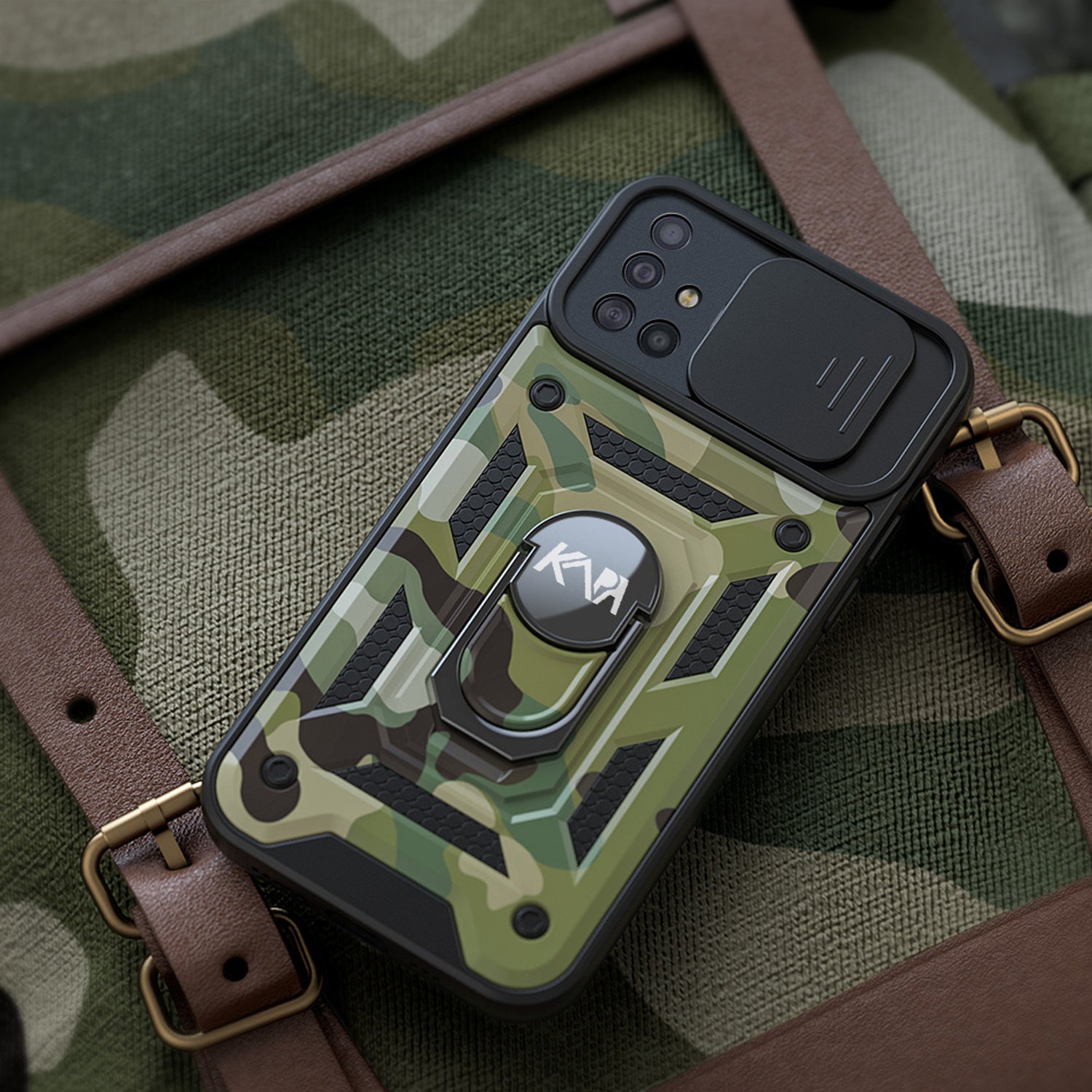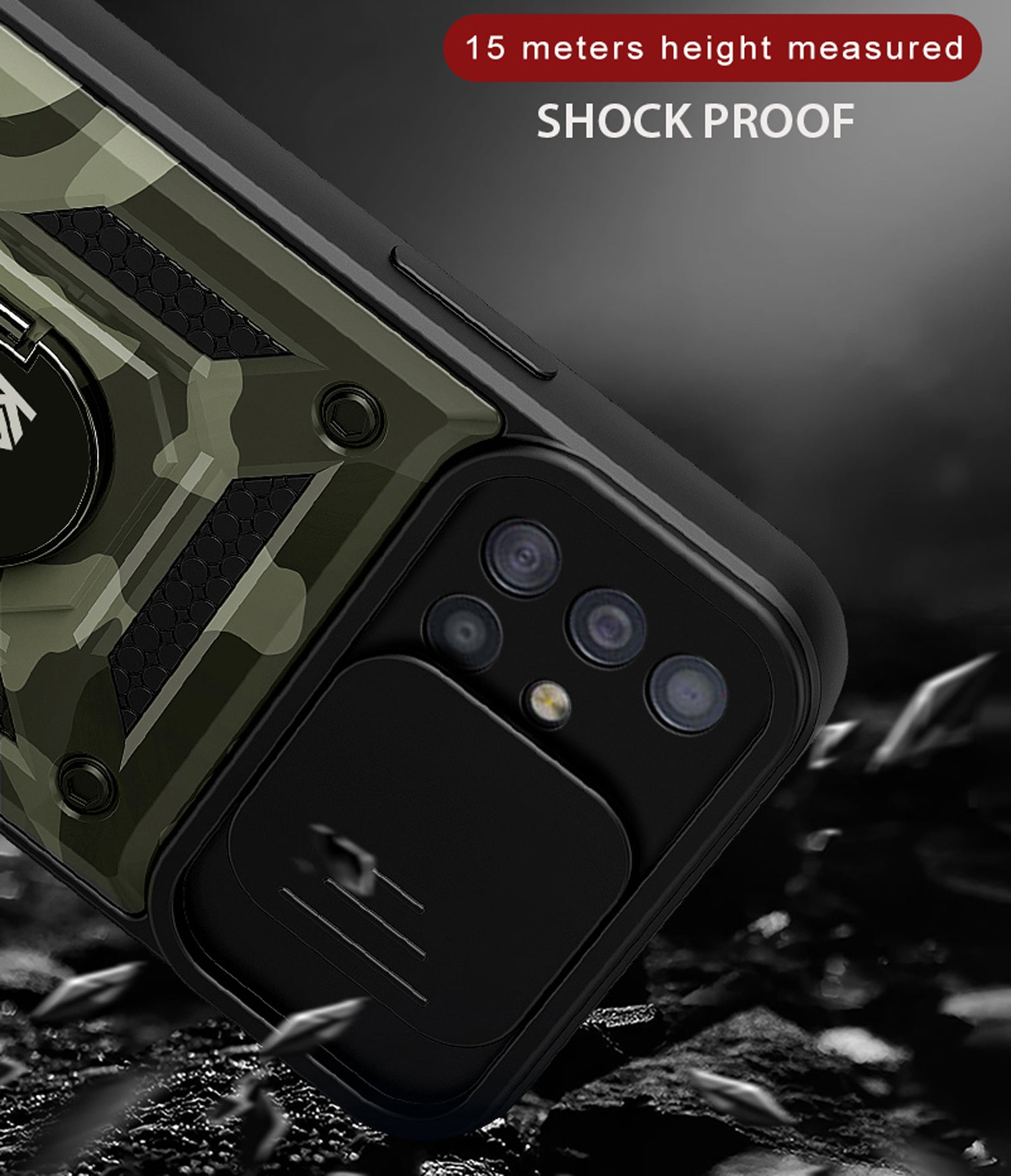 Tank Back Cover for Samsung Galaxy A71 , Inbuilt Ring & Slider [Military Grade Protection] Shockproof Lens Protection Case (Green)