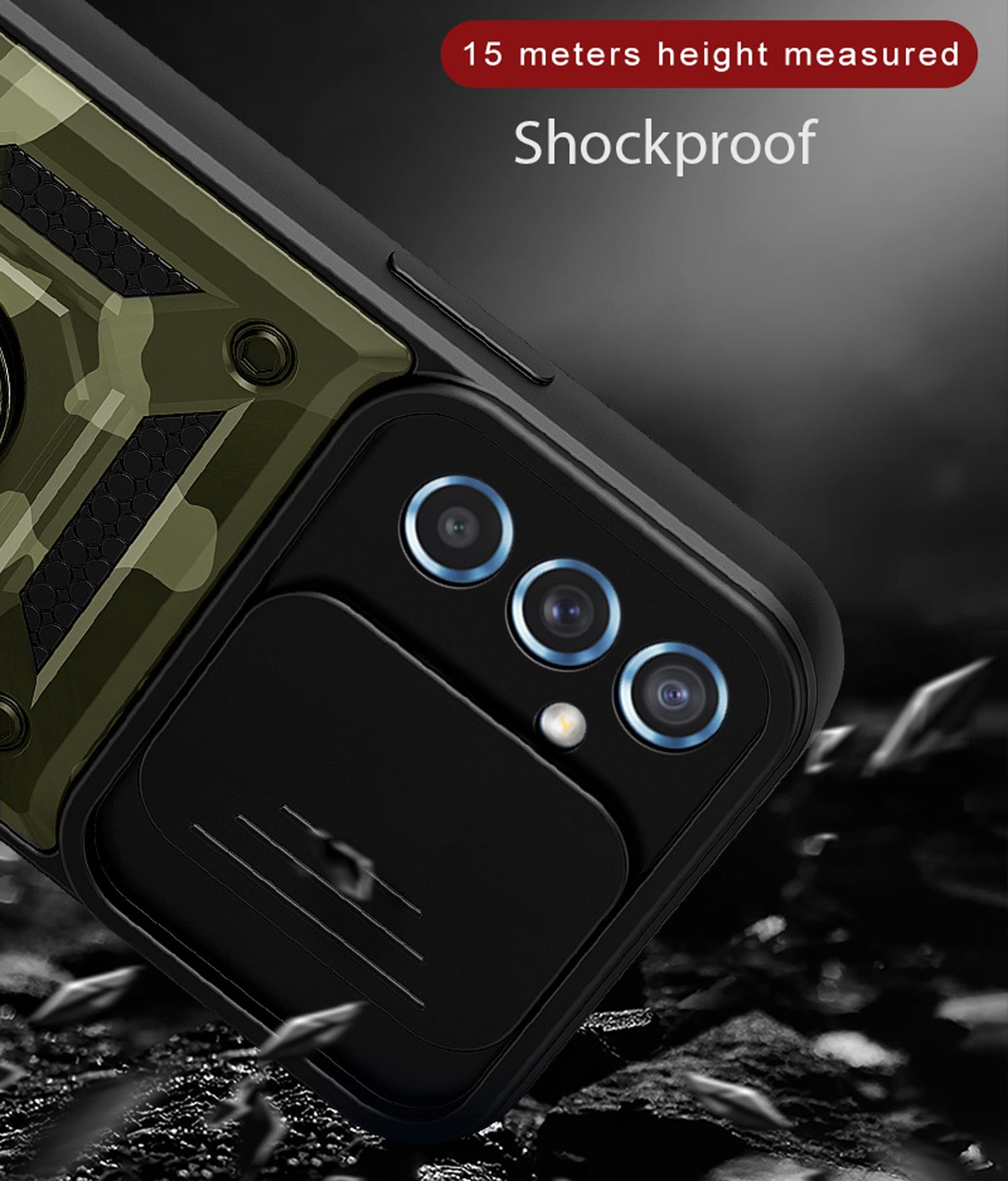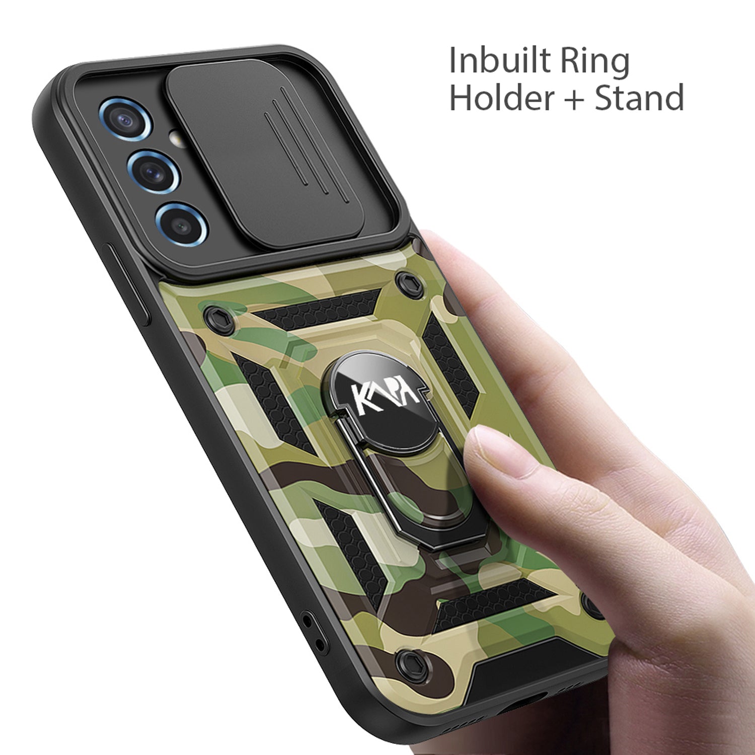 Tank Back Cover for Samsung Galaxy M52 (5G), Inbuilt Ring + Slider Shockproof Lens Protection Case (Green)
