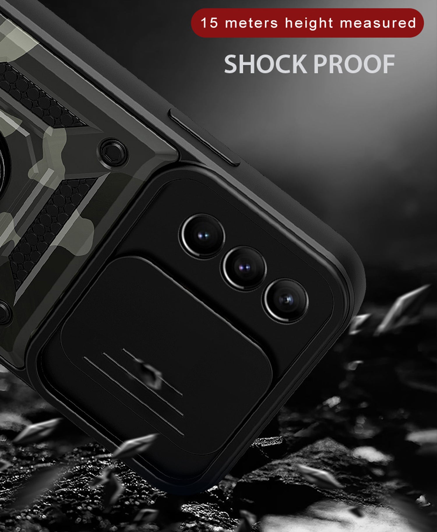 Tank Back Cover for Samsung Galaxy S21 Plus , Inbuilt Ring & Slider [Military Grade Protection] Shockproof Lens Protection Case (Black)