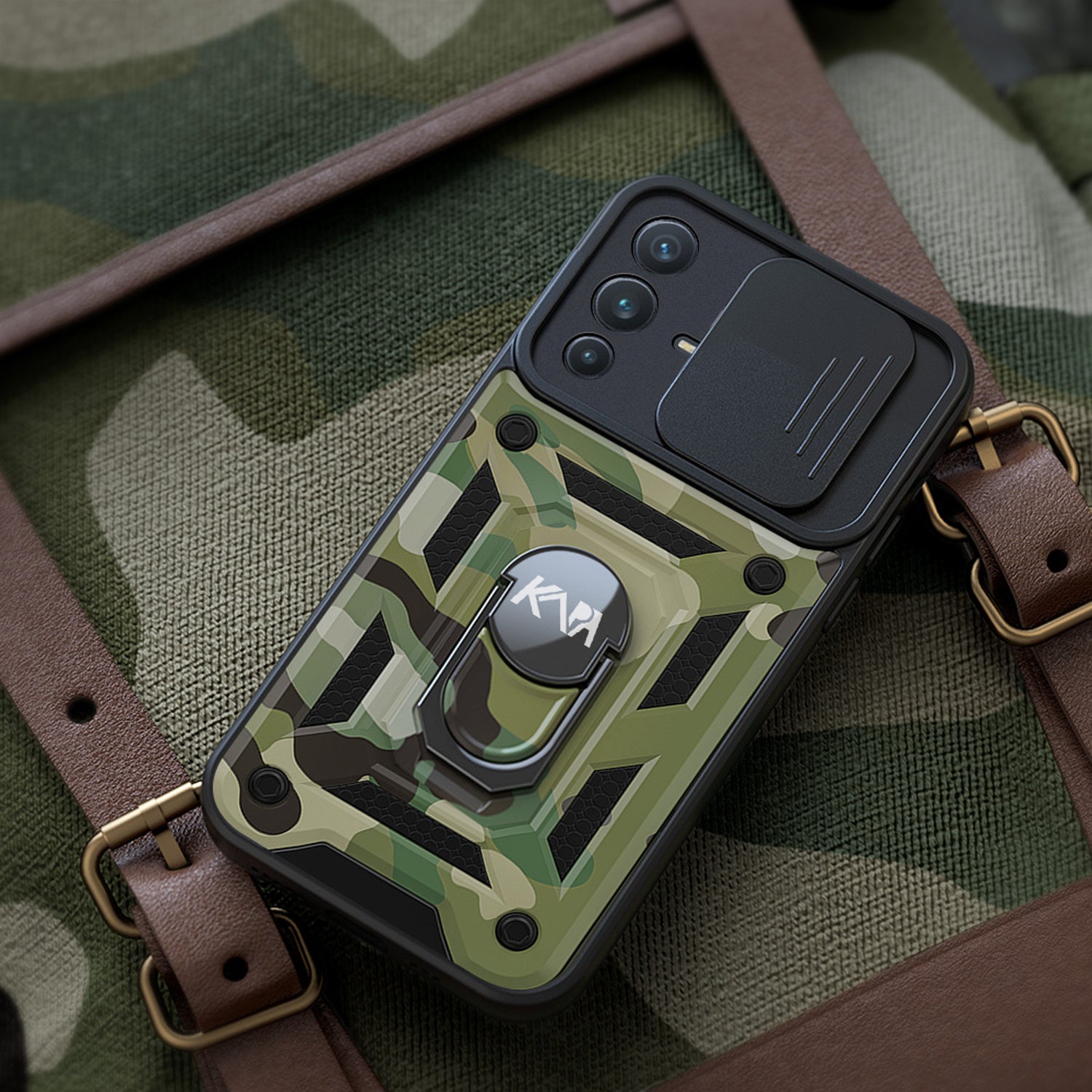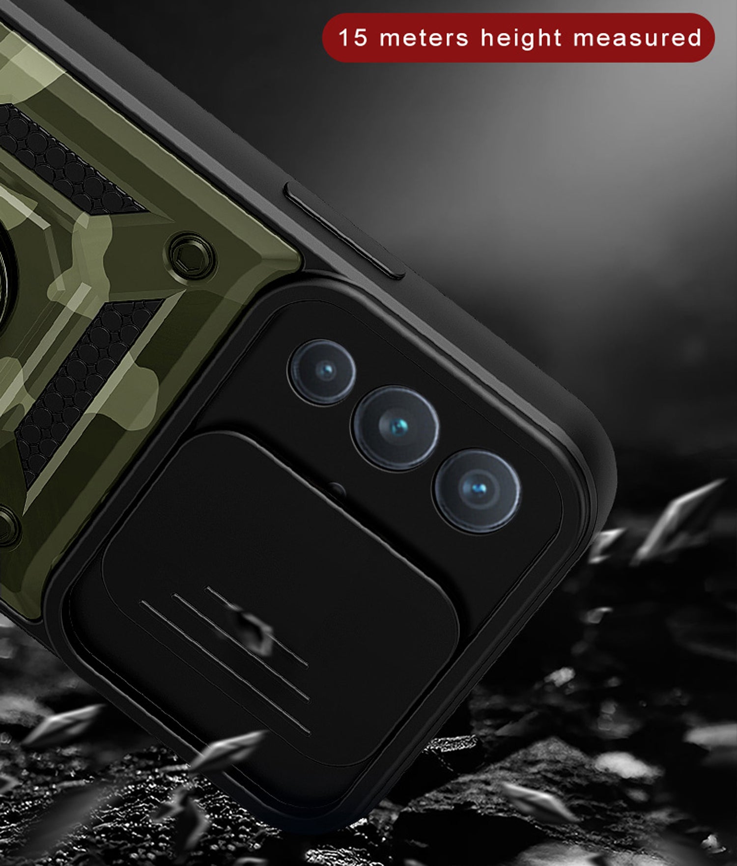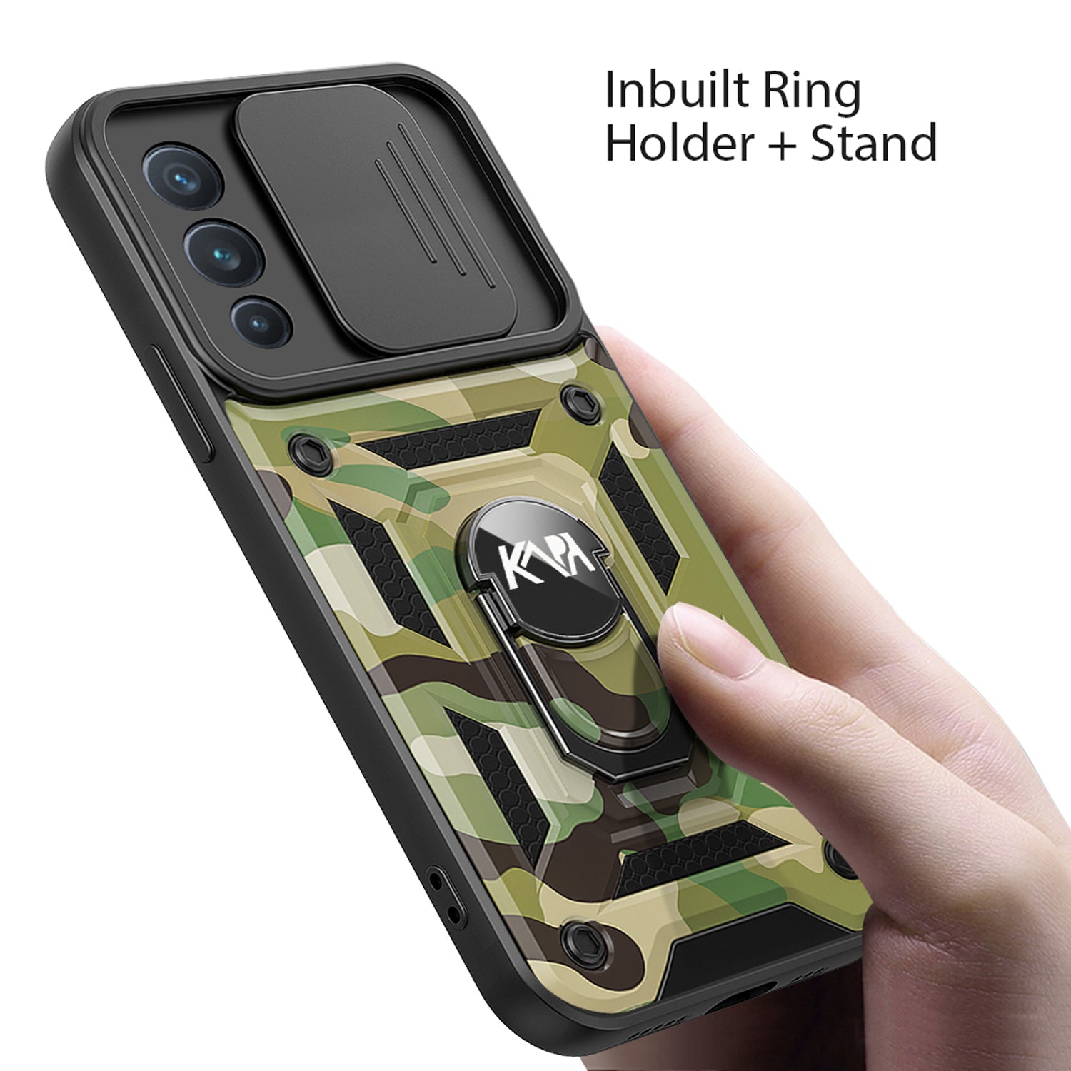Tank Back Cover for Vivo V23 , Inbuilt Ring + Slider Shockproof Lens Protection Case (Green)
