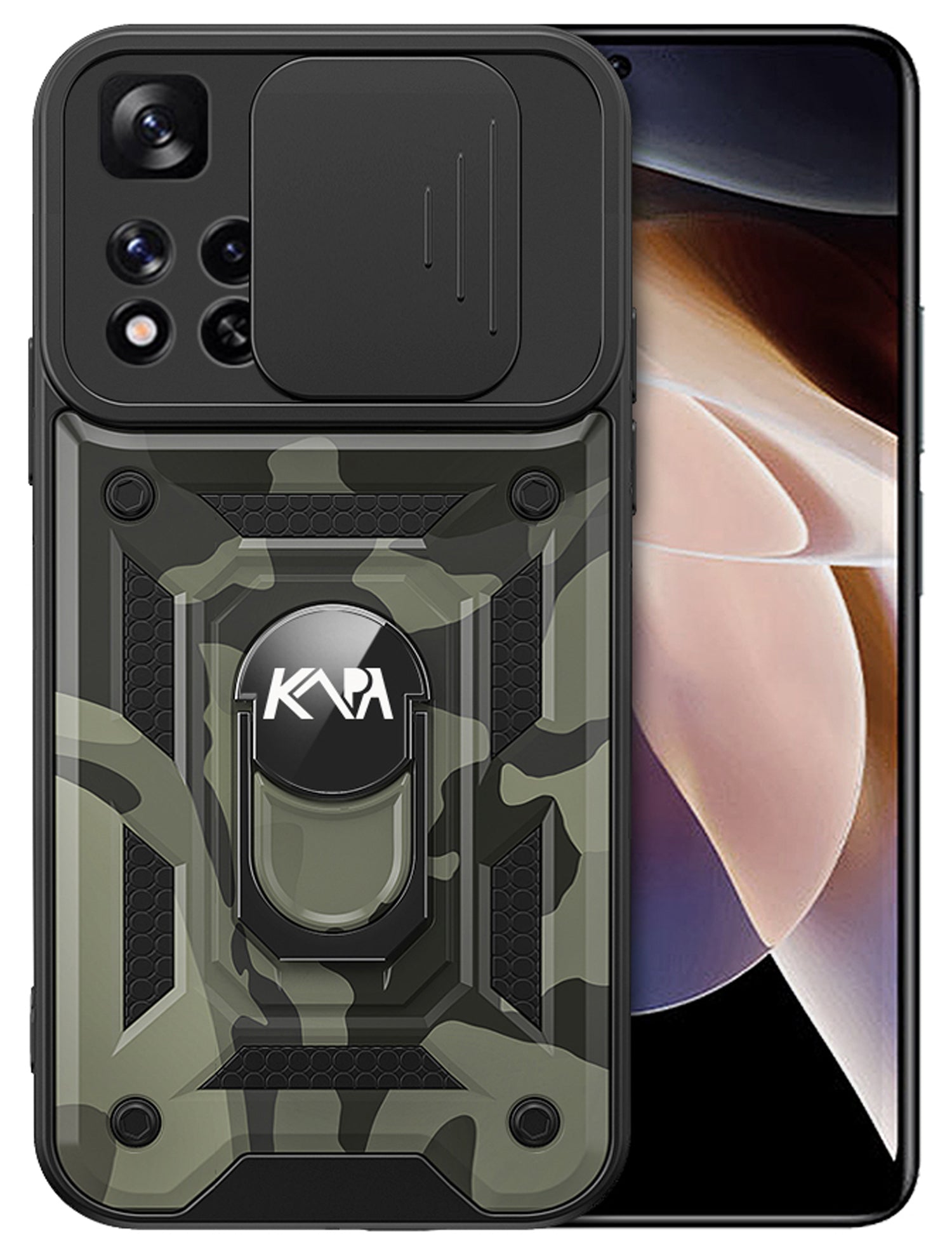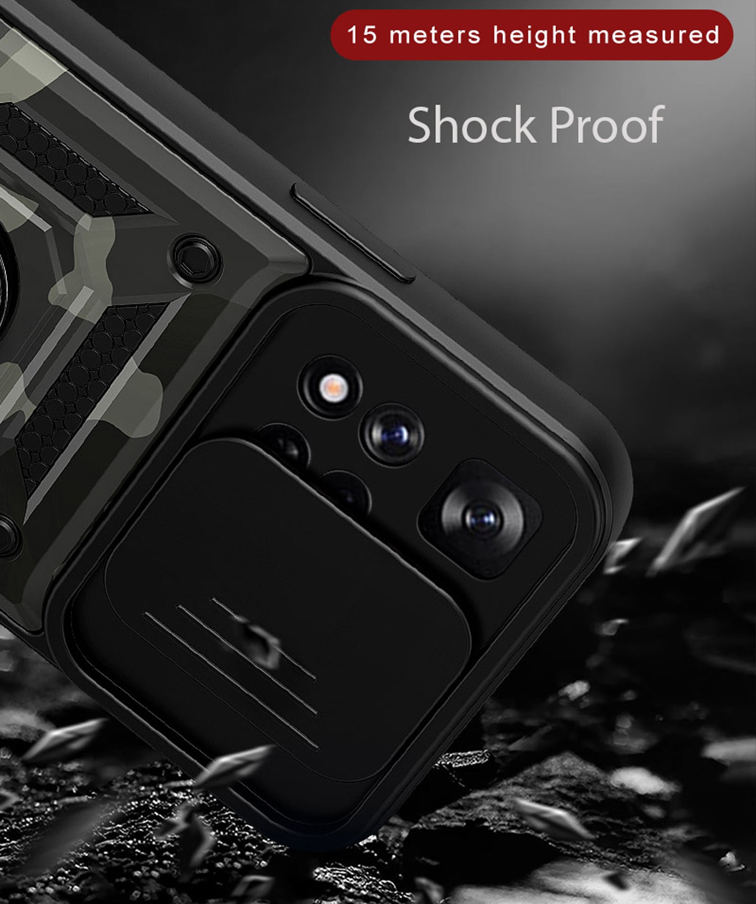 Tank Back Cover for Xiaomi 11i Hypercharge (5G) , Inbuilt Ring + Slider Shockproof Lens Protection Case (Black)