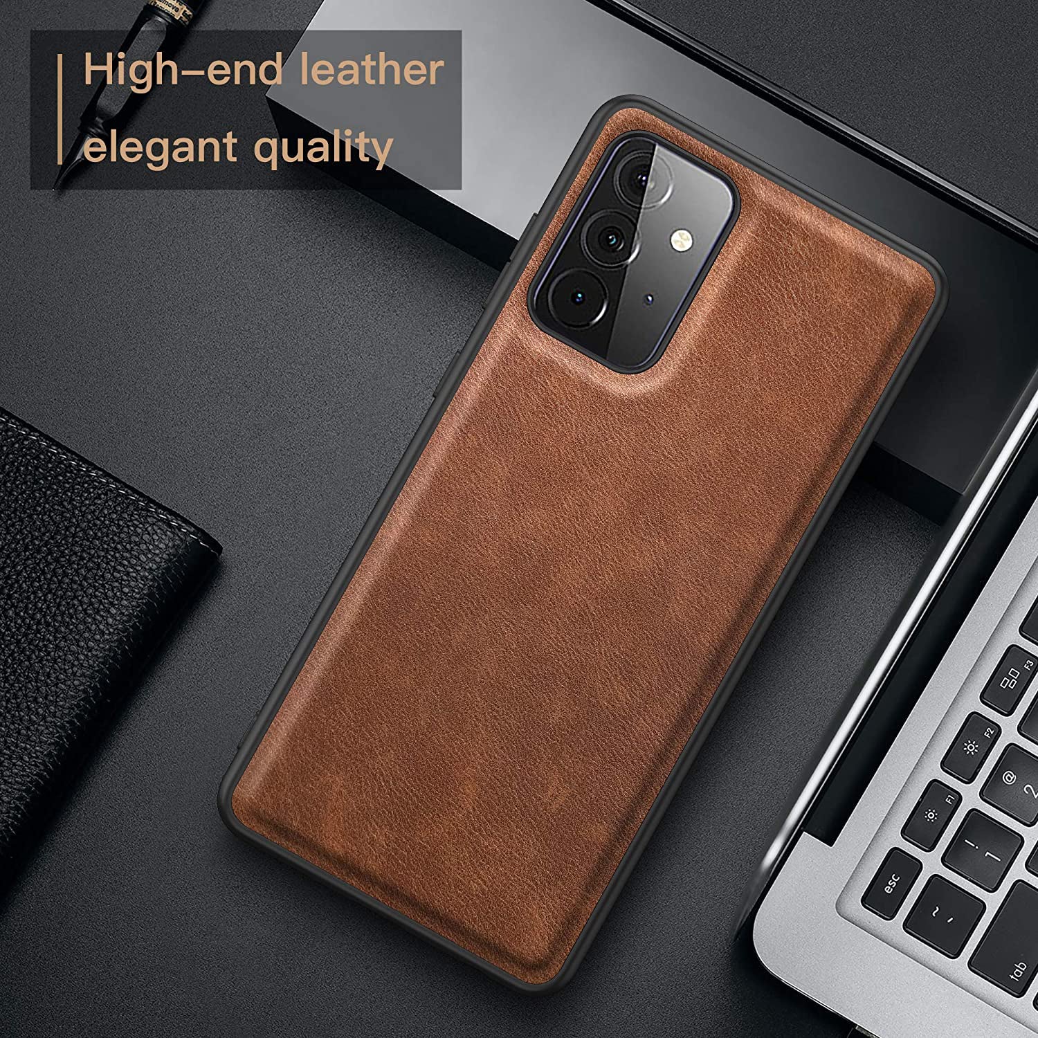 Tux Back Case for Samsun Galaxy A52 , Slim Leather Case with Soft Edge Shockproof Back Cover (Brown)