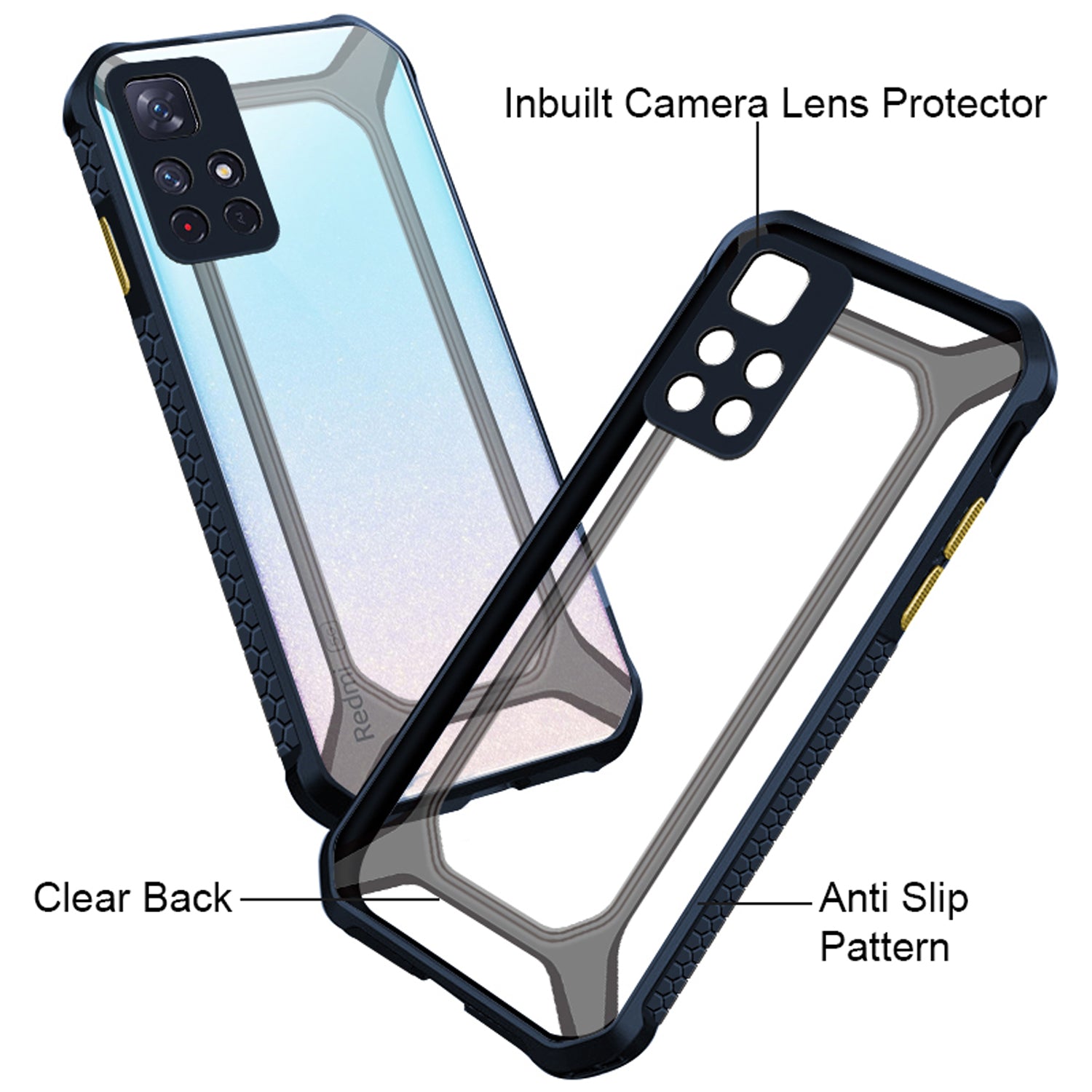 Unicorn for Redmi Note 11T (5G) Clear Back Case, [Military Grade Protection] Shock Proof Slim Hybrid Bumper Cover (Blue)