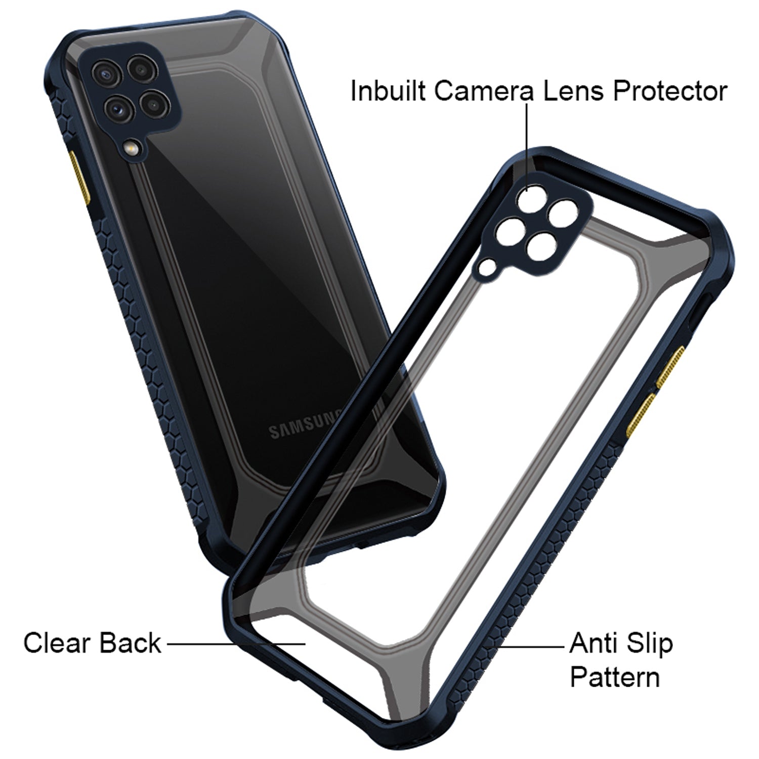 Unicorn for Samsung Galaxy A22 (4G) Clear Back Case, [Military Grade Protection] Shock Proof Slim Hybrid Bumper Cover (Blue)
