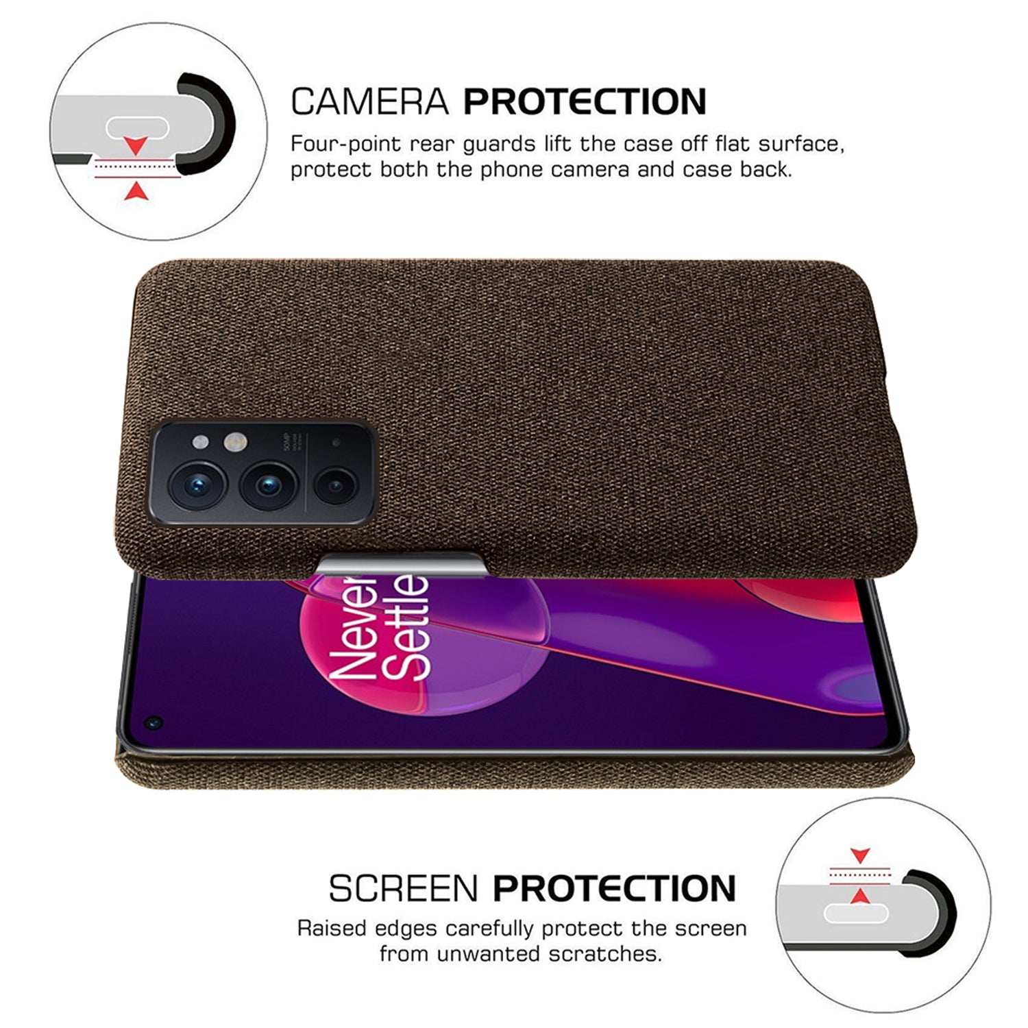 Woven Soft Fabric Case for OnePlus 9RT Back Cover, Shock Protection Slim Hard Anti Slip Back Cover (Brown)