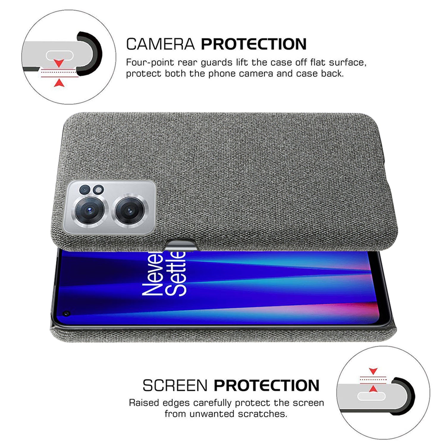Woven Soft Fabric Case for OnePlus Nord CE 2 (5G) Back Cover, Shock Protection Slim Hard Anti Slip Back Cover (Grey)