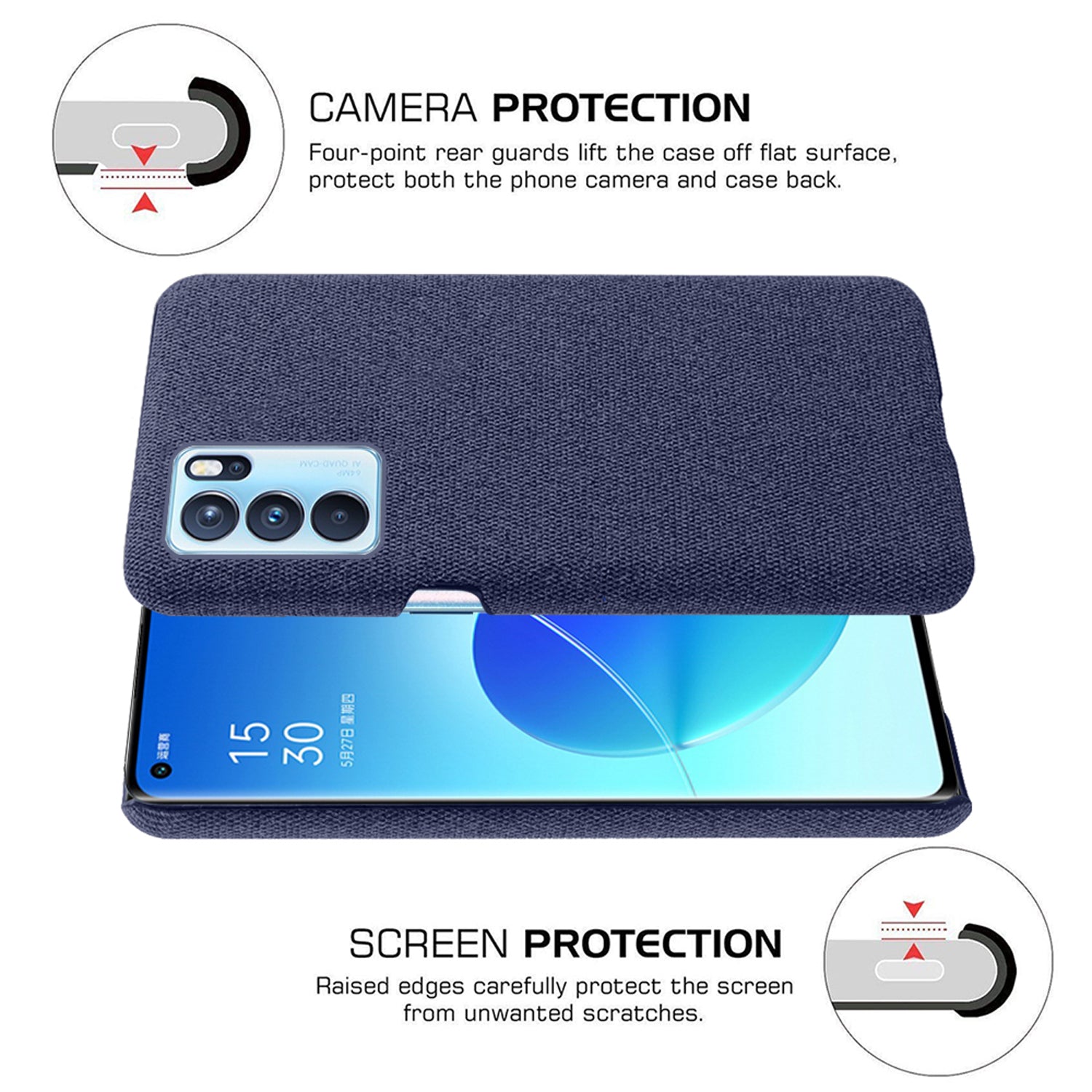 Woven Soft Fabric Case for Oppo Reno 6 Pro Back Cover, Shock Protection Slim Hard Anti Slip Back Cover (Blue)