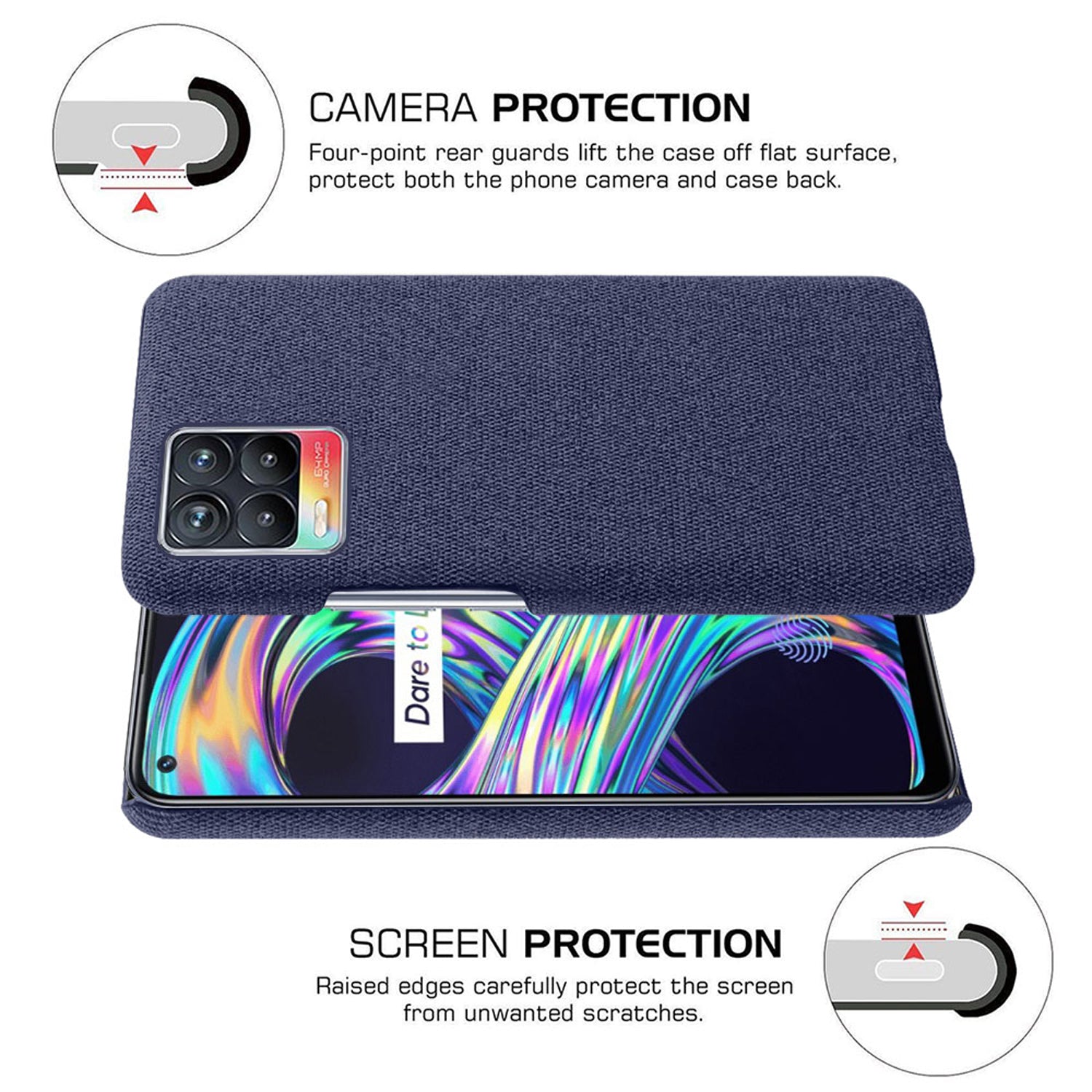 Woven Soft Fabric Case for Realme 8 Pro / Realme 8 (4G) Back Cover, Shock Protection Slim Hard Anti Slip Back Cover (Blue)